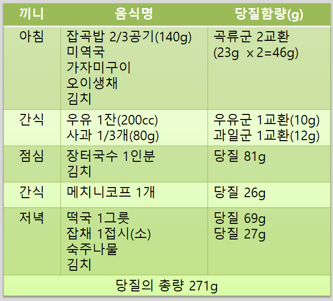 2) 식품교환표를 이용한 당질계산법