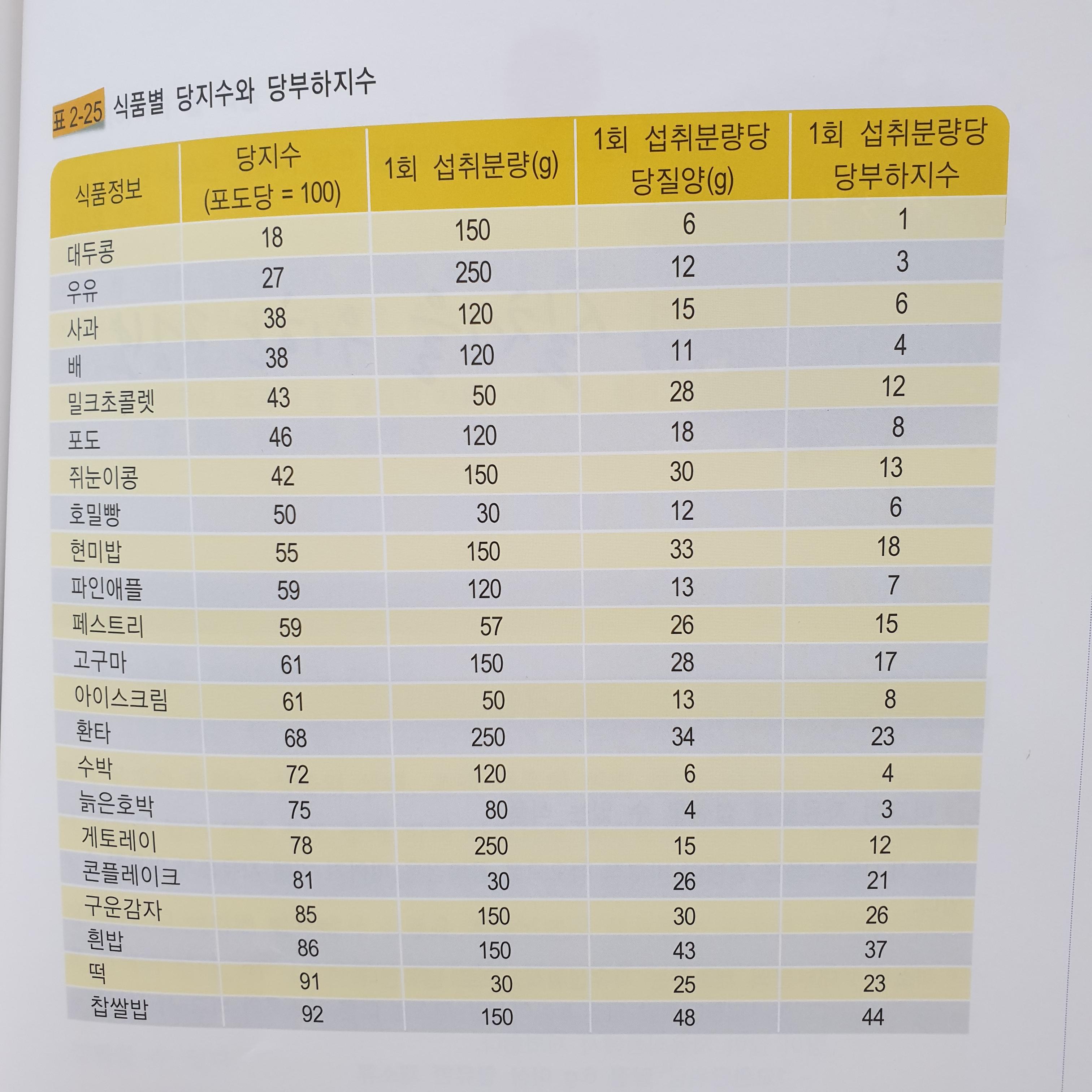 식후 당질의 흡수속도를 반영하여 당질의 질을 비교할 수 있도록 수치화한것이 당지수(glycemic index)이다.