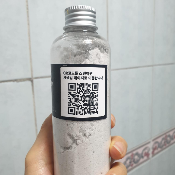 스크럽 제품이 아니라서 가루가 잘 안 발리고 떨어진다면, 얼굴과 몸에 물을 더 묻혀주세요.