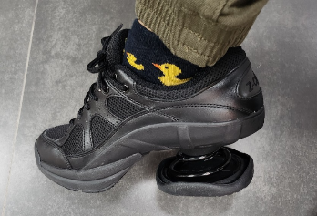 허리디스크 통증을 감소시키고 자세를 교정하는데 도움을 주는 신발을 구매하여 신어보고 있다.
