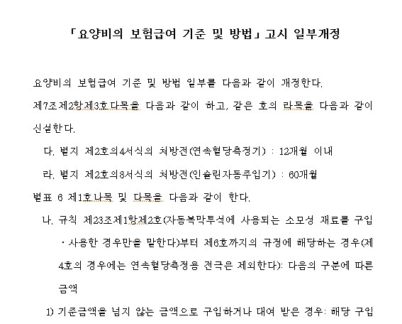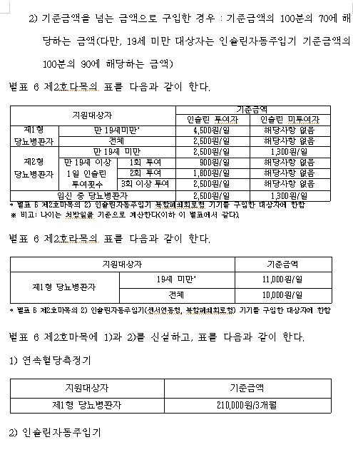 시행일 2024년 2월 26일부터 제1형 당뇨병환자 중 만 19세 미만은 기준금액의 90%로 요양비 급여금액이 확대되었습니다.
