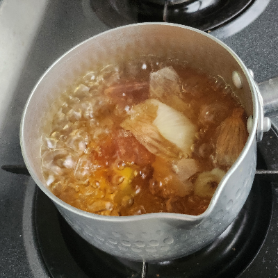 그런 다음 양파의 노란 껍질을 벗겨 차로 끓여 마셔요.