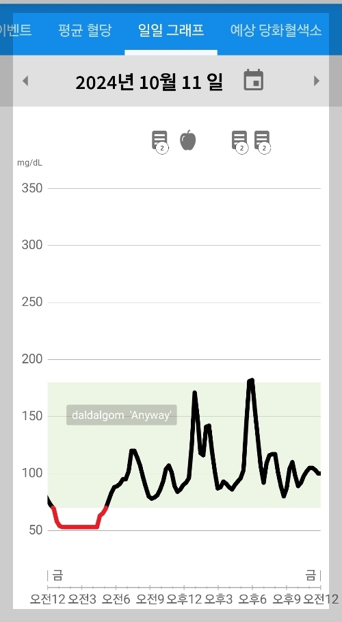 그러다 보니 혈당곡선이 완만하게 나오는 것 같아요.