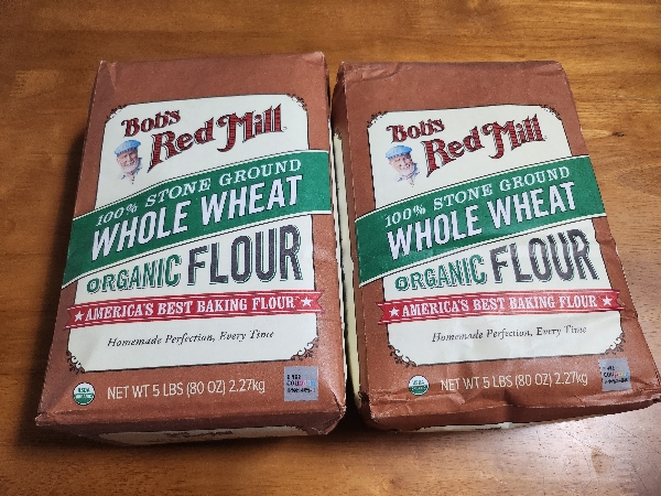 밥스레드밀 오가닉 통밀가루 한 가지로만 만들어 먹고 있어요.