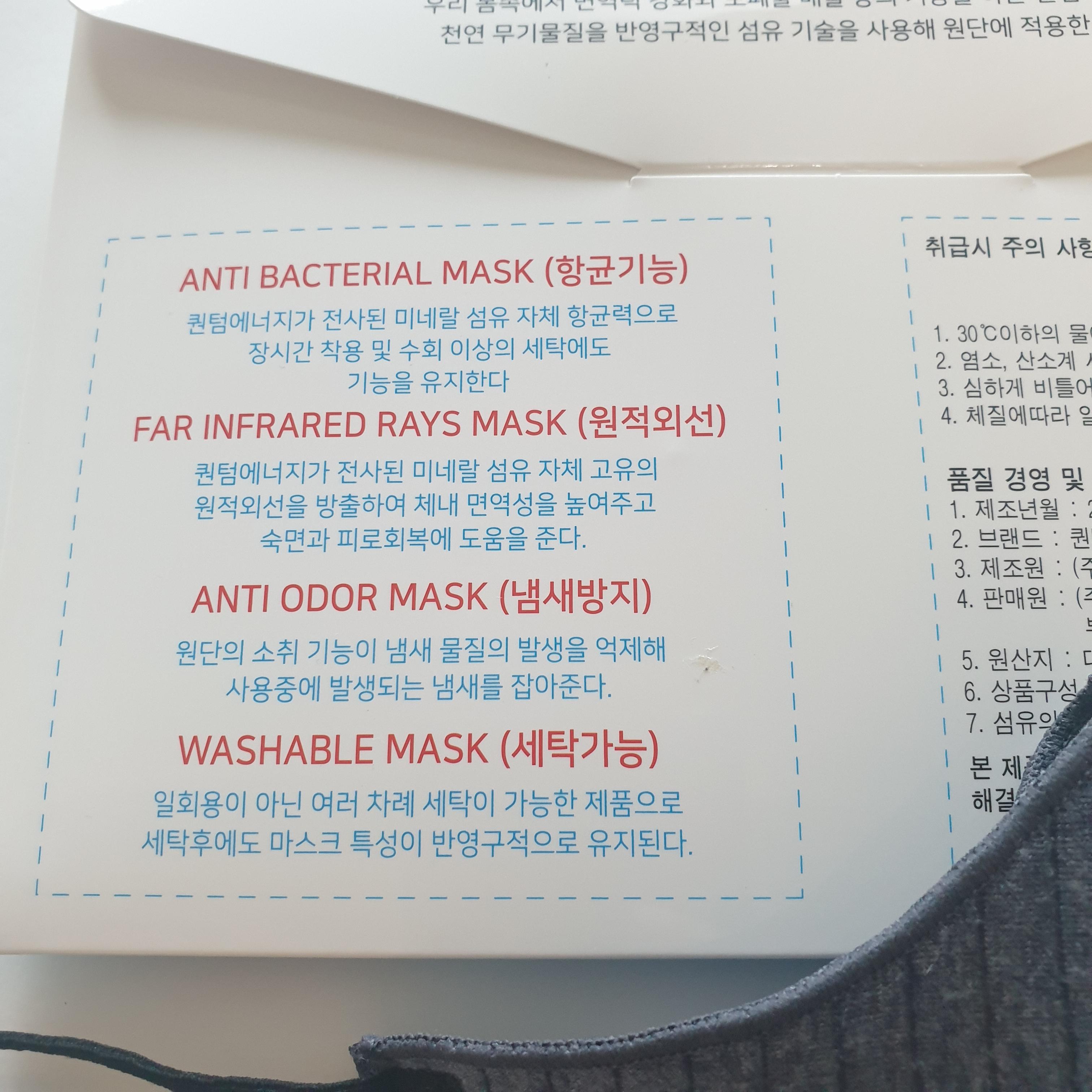 에코시즌에 만든 퀀텀항균마스크는 미세전류가 흘려 코로나를 차단시키고, 원적외선이 나오는 마스크입니다.